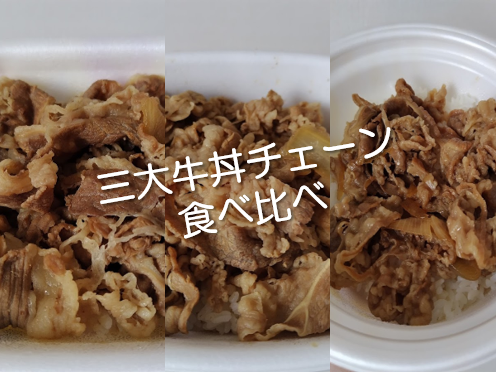 三大牛丼チェーンの牛丼を食べ比べてみた話